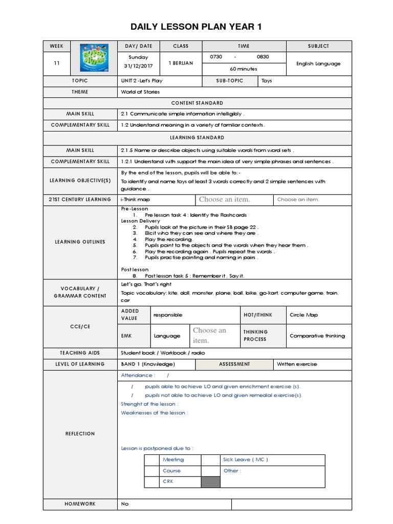 Sk English Tahun 5 Pdf Daily Lesson Plan English Year 5 Week Day Date Time Class Focused Skill Topic Theme Choose An Item Choose An Course Hero